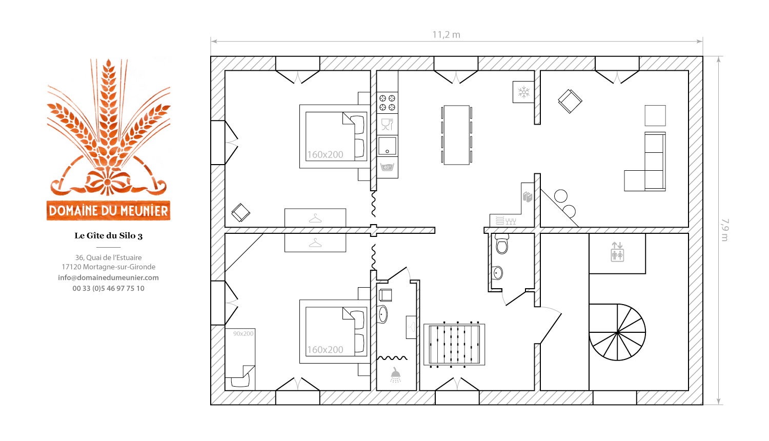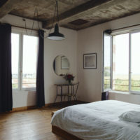 Situated on the third floor of a renovated grain silo, Silo 1 is an industriel loft of 125 m2 with two connected sleeping rooms, a fully equiped kitchen, a living room with a convertible canapé, a hall with walk-in shower and toilettes. With view on the garden, the cliffs, the Gironde-estuary, the harbour and the sunset!